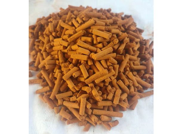 外观:棕褐色条形 外形尺寸: φ5~6x 5- 15mm 堆密度: 0.65-0.85kg/L强度:≥50. 0N/cm(侧压)孔隙率: 50-60%